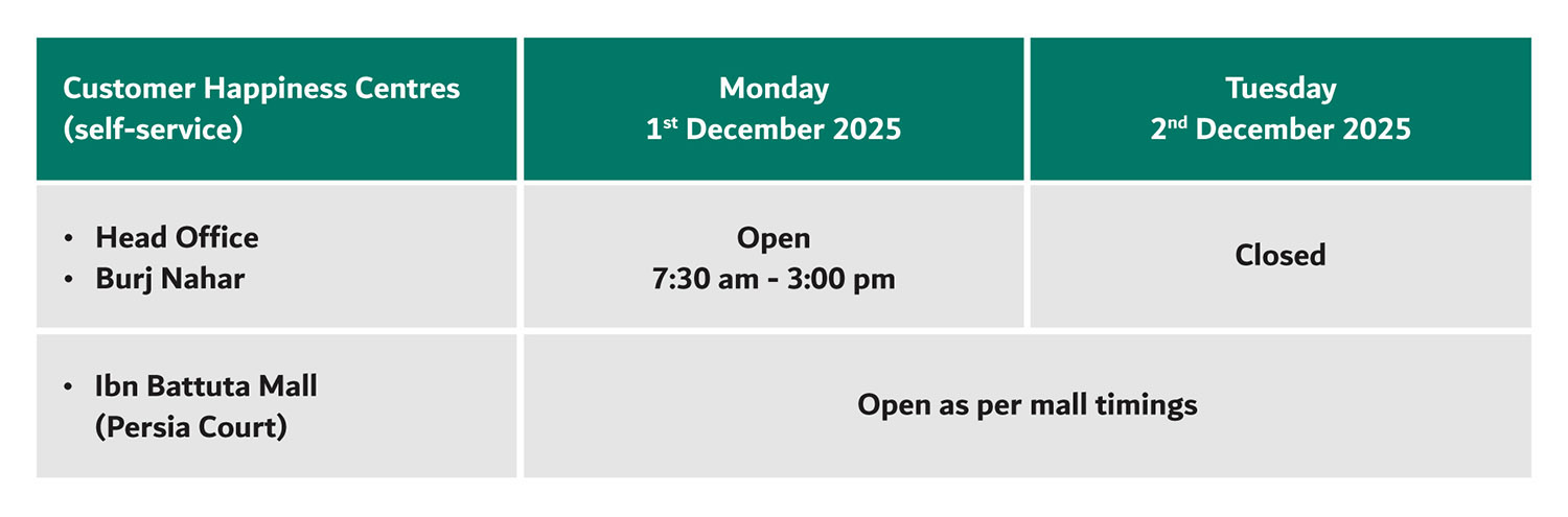 Future Customer Happiness Centre - (Ibn Battuta Mall – Persia Court) |