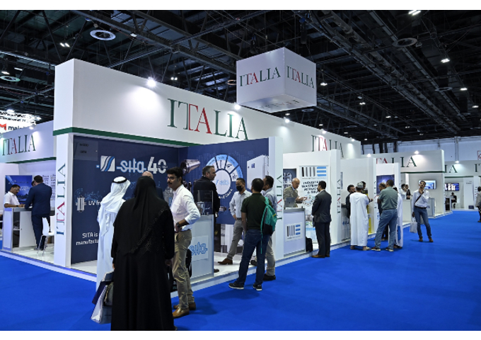 يحتضن جناح الجمهورية الإيطالية في الدورة السادسة والعشرين من معرض تكنولوجيا المياه والطاقة والبيئة (ويتيكس)، 44 شركة عارضة متخصصة في أنظمة الطاقة المتجددة، الصحة البيئية والسلامة الغذائية، المعالجة المتكاملة للنفايات، ومحطات إعادة التأهيل البيئي، ومعالجة المياه، ومعدات نزح المياه، المعالجة الكيميائية للمياه، محطات تحلية المياه، الوقود البديل، المضخات المزودة بالعدادات، الفحوص المخبرية، ومحطات الاستخدام المدني والزراعة.