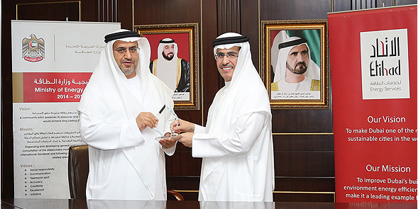 وقع سعادة/ سعيد محمد الطاير، نائب رئيس المجلس الأعلى للطاقة في دبي، العضو المنتدب الرئيس التنفيذي لهيئة كهرباء و مياه دبي، وسعادة/ الدكتور مطر حامد النيادي، وكيل وزارة الطاقة، مذكرة تفاهم تهدف لتبادل الخبرات في مجال إنشاء سوق على مستوى إتحادي لخدمات الطاقة في دولة الإمارات العربية المتحدة، وترشيد الاستهلاك في المباني القائمة وبالأخص المباني الحكومية واستكشاف فرص تطوير مشاريع خفض استهلاك الطاقة. وحضر حفل التوقيع سعادة / المهندسة فاطمة الفورة الشامسي وكيل الوزارة المساعد لشؤون الكهرباء والطاقة النظيفة ومياه التحلية، والمهندس وليد سلمان، النائب التنفيذي للرئيس لقطاع الاستراتيجية وتطوير الأعمال في هيئة كهرباء ومياه دبي، وستيفان لو جنتيل، الرئيس التنفيذي لشركة الإتحاد لخدمات الطاقة والمهندس محمد المطوع، رئيس قسم سياسات الترشيد في وزارة الطاقة . وقال سعادة سعيد محمد الطاير: يأتي تعاوننا مع وزارة الطاقة في الدولة انسجاماً مع توجيهات سيدي صاحب السمو الشيخ محمد بن راشد آل مكتوم، نائب رئيس الدولة رئيس مجلس الوزراء حاكم دبي -رعاه الله، واستراتيجية الإمارات للتنمية الخضراء التي أطلقها سموه، والرامية لجعل دولة الإمارات قطباً عالمياً ورائداً في مجال الإقتصاد الأخضر، وكذلك إستراتيجية دبي المتكاملة للطاقة 2030 التي تهدف إلى خفض الإستهلاك في مجال الطاقة بنسبة 30%. أضاف سعادته: نعمل على توثيق الشراكات بين القطاعين العام والخاص من خلال التعاقد على مشاريع كفاءة الطاقة بما يقدم دعماً قوياً لبناء محفظة للفرص المتنوعة وذلك بهدف الاستخدام الأمثل للطاقة. من جهته، قال سعادة الدكتور مطر حامد النيادي ان الوزارة تهدف من خلال عقد مذكرات تفاهم مع الشركات الوطنية والجهات المحلية إلى مشاركة القطاع الخاص وإبراز الدور الفعال للجهات المحلية المعنية بقطاع الطاقة في الدولة ومنها هيئة كهرباء ومياه دبي في تحقيق مستهدفات الأجندة الوطنية 2021 والتي تتشرف الوزارة بمتابعتها والعمل على تنفيذها مع الجهات ذات العلاقة. وأضاف سعادته أننا نعمل جاهدين في وزارة الطاقة على تطوير استراتيجيات خاصة لتعزيز فرص الاستخدام الأمثل للطاقة في الدولة حيث وضعت الوزارة ترشيد استهلاك الطاقة والمياه كأحد أهدافها الاستراتيجية. ومن هذا المنطلق تأتي شراكتنا مع الإتحاد لخدمات الطاقة على تشجيع الابتكار في وضع تدابير مستدامة من شأنها أن تساهم في جعل الامارات مركزاً عالمياً للاقتصاد الأخضر. وذكر الدكتور مطر أن توقيع مذكرة التفاهم مع شركة الاتحاد سيساعد على فتح أسواق جديدة لخدمات الطاقة وصولاً إلى إنشاء سوق لخدمات الطاقة يرمي الى تحديد وتطوير فرص تحسين كفاءة الطاقة وترشيدها. وفي السياق ذاته، قال ستيفان لو جنتيلنحن متحمسون للتعاون مع وزارة الطاقة في الدولة لتطوير فرص جديدة في قطاع كفاءة الطاقة. وتحمل سوق كفاءة الطاقة فرصاً هامةً في المنطقة، خصوصاً وأنها لا تزال سوقاً ناشئة، ومن شأن استغلال هذه الفرص أن يجعل من دبي مدينةً مستدامةً رائدة. وتدرك الشركات اليوم أهمية تبني الحلول التي تتميز بكفاءة استهلاك الطاقة في ممارساتها وأعمالها، مع الأخذ بعين الاعتبار الآثار المالية المترتبة على تطوير المرافق الحالية. وستلعب ’الاتحاد إسكو‘ دوراً فعالاً في تطوير فرص فعالة ذات جودة عالية وصديقة للبيئة في المنطقة.