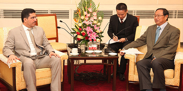 HE Wan Jifei, Chairman of the China Council for the Promotion of International Trade (CCPIT) received the delegation of the Supreme Council of Energy headed by its Vice Chairman, HE Saeed Mohammed Al Tayer. The delegation also included Ahmad Butti Al Muhairbi, Secretary General of the Supreme Council, and from DEWA, Waleed Salman, Executive Vice President of Strategy and Business Development, Nasser Lootah, Executive Vice President of Generation, Dr. Yousef Al Akraf, Executive Vice President of Business Support, Lars Marmsjo, Chief Advisor on Generation, Ahmed Abdullah, Deputy Senior Manager of External Communications, and Arif Julfar, Manager of Media and Marketing. Wan welcomed the Supreme Council’s delegation, which is on a business visit to Beijing to explore joint collaboration with Chinese businesses on energy, electricity and water projects, and to look at their achievements in the areas of clean energy, alternative energy sources and reducing power grid losses. Wan praised the solid relations between China and the UAE. The meeting also focused on strengthening relations between the two countries in general, and between China and Dubai in particular, in energy, renewable energy and trade. Al Tayer extended an invitation to the CCPIT to attend Dubai Global Energy Forum 2013, which will be organized for the second year under the patronage of HH Sheikh Mohammed bin Rashid Al Maktoum, Vice President and Prime Minister of the UAE and Ruler of Dubai, under the theme Clean Energy For Sustainable Development. This high-profile event will take place at the same time as the 15th WETEX 2013 during 15-17 April, 2013 at Dubai International Convention and Exhibition Centre. Al Tayer briefed the Chinese about Dubai’s strategic drive in developing renewable energy. The delegation also held discussions with Chinese companies to explore investment opportunities and participating in exhibitions and projects. At the end of the meeting, the two sides exchanged shields and gifts, and Al Tayer presented the book written by HH Sheikh Mohammed bin Rashid Al Maktoum, entitled My Vision, to Mr. Wan.